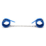 סט קלאסי של אזיקי ידיים כחולים, בתפירה כפולה ומשולבים באבזמי מתכת .