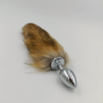 באט פלאג ממתכת עם זנב שועל בצבע חום ושחור.מתאים לפט פליי קוספליי ועוד הרבה משחקי תפקידים קינקים אחרים.