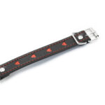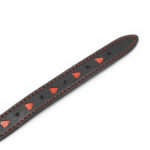 רצועות המחסום עשויות דמוי עור שחור, משולב בתיפורים אדומים ולבבות שזורים לאורכם שניתנות להתאמה באמצעות אבזם מתכת.