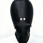 מסכה מבד ליקרה אלסטי בצבע שחור מכסה את כל הפנים עם ריצרץ על איזור הפה ו2 ניטים ממתכת עם חור לאף לאפשר נשימה גם בזמן שהריצרץ סגור.