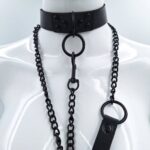סט קולר ורצועה דמוי עור שחור ומתכת בצבע שחור מט מעולה למשחקי BDSM וקינק.