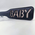 ספנקר דמוי עור שחור דו שכבתי עם הכיתוב BABY בצבע לבן, מתאים מאוד לחובבי קינק וBDSM משאיר אחריו סימון BABY מתאים גם למתחילים וגם לבעלי ניסיון.