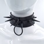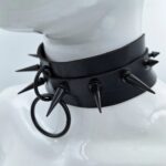 קולר דמוי עור בצבע שחור עם ניטים בצבע שחור מט.